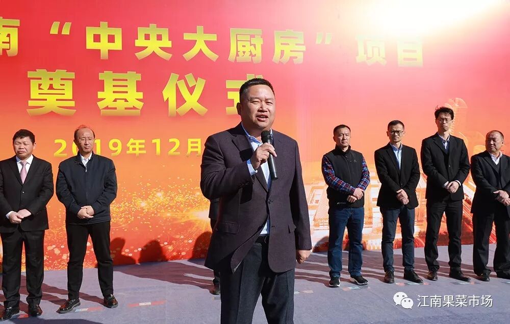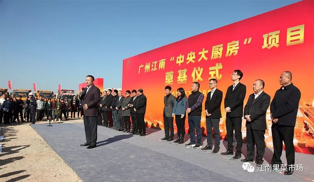 广州江南市场“中央大厨房”项目奠基动工12月8日,广州江南市场“中央大厨房”项目开工奠基仪式在白云区江高镇大厨房项目建设工地现场举行。出席本次奠基仪式有广州市商务局有关领导、白云区政府副区长蔡胜、江高镇党委及部分职能部门领导,6家银行单位主要负责人,工程建设、监理单位,江南市场部分龙头商户,以及各界嘉宾朋友共两百余人。 广州中央大厨房是广州市和白云区的重点项目,是粤港澳大湾区“菜篮子”重要组成部分,同时也是江南公司未来重点打造的民生项目。项目预期2.5年内可建设好并投入运营。